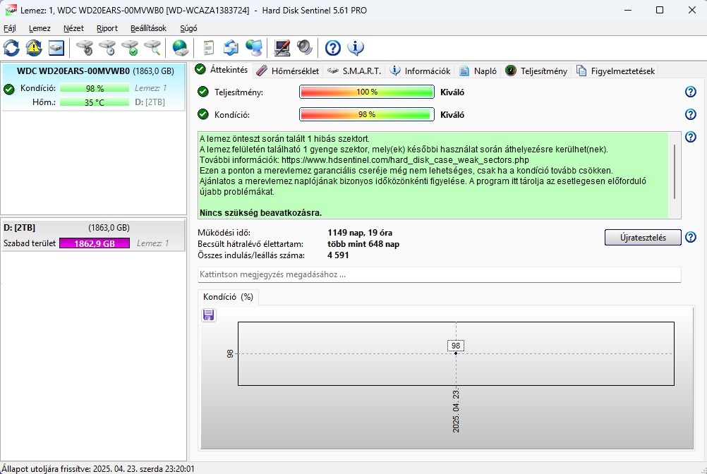 Külsőleg jó állapotú, 98%-os kondícióval.