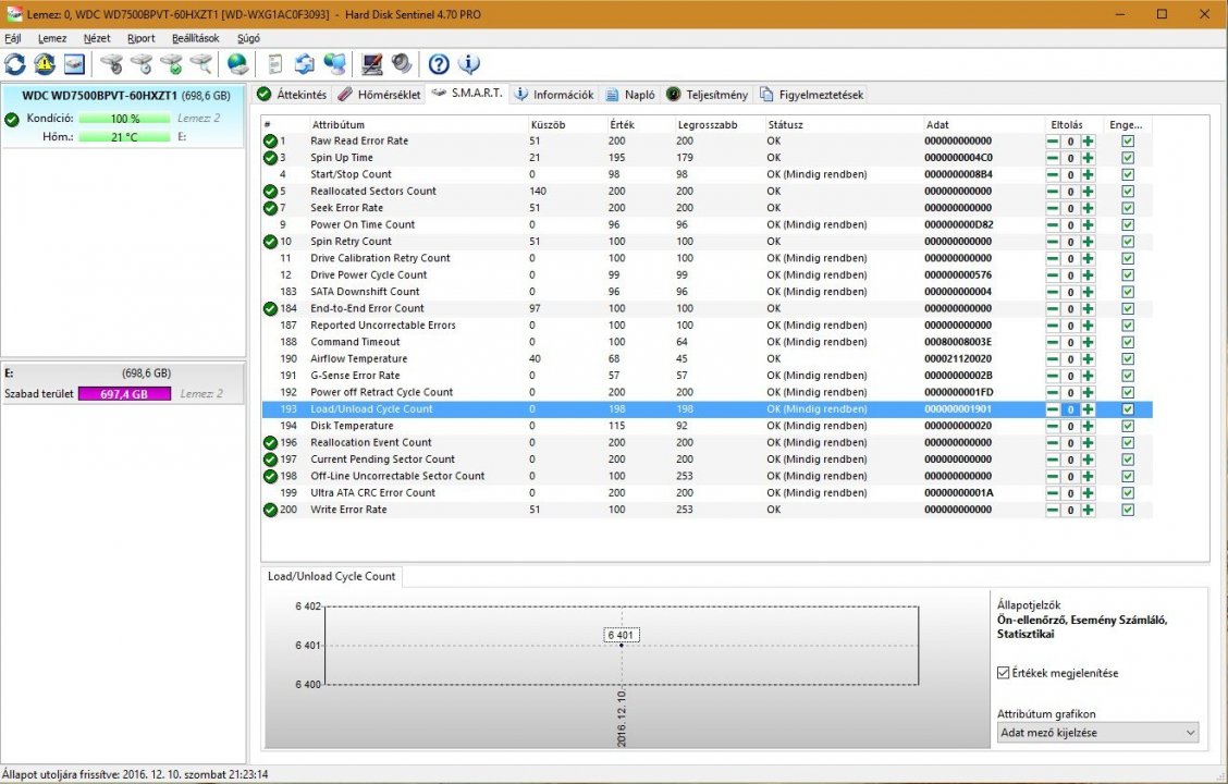 Eladó két darab hibátlan Western Digital 750GB-os Scorpio Blue HDD. HD Sentinel képek mellékelve.