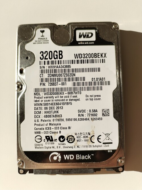 WD Black 320 GB laptop merevlemez