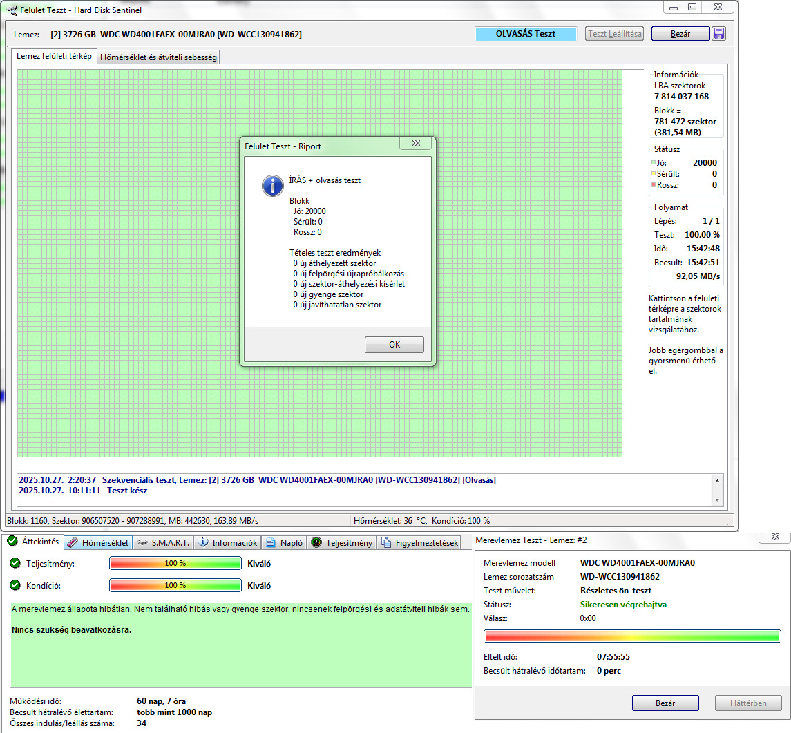 Teljes írás-olvasás felületteszt és Részletes önteszt lefutott.