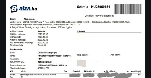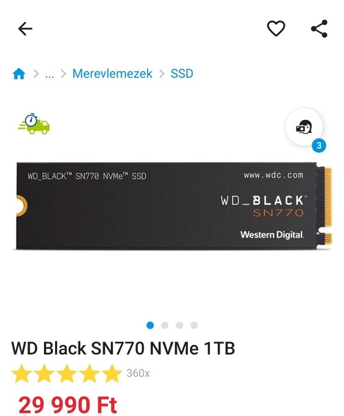 WD Black SN770 NVMe 1TB (Új Dontatlan)