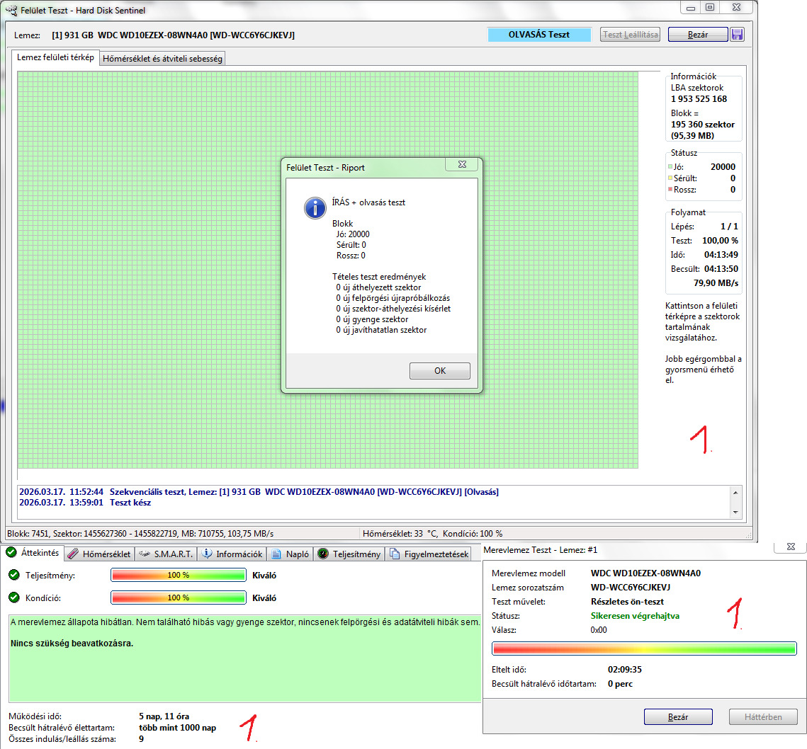 1. WDC WD10EZEX-08WN4A0 1TB 7200RPM 64MB Cache 100/100 5nap 11óra 9indulás 10k
