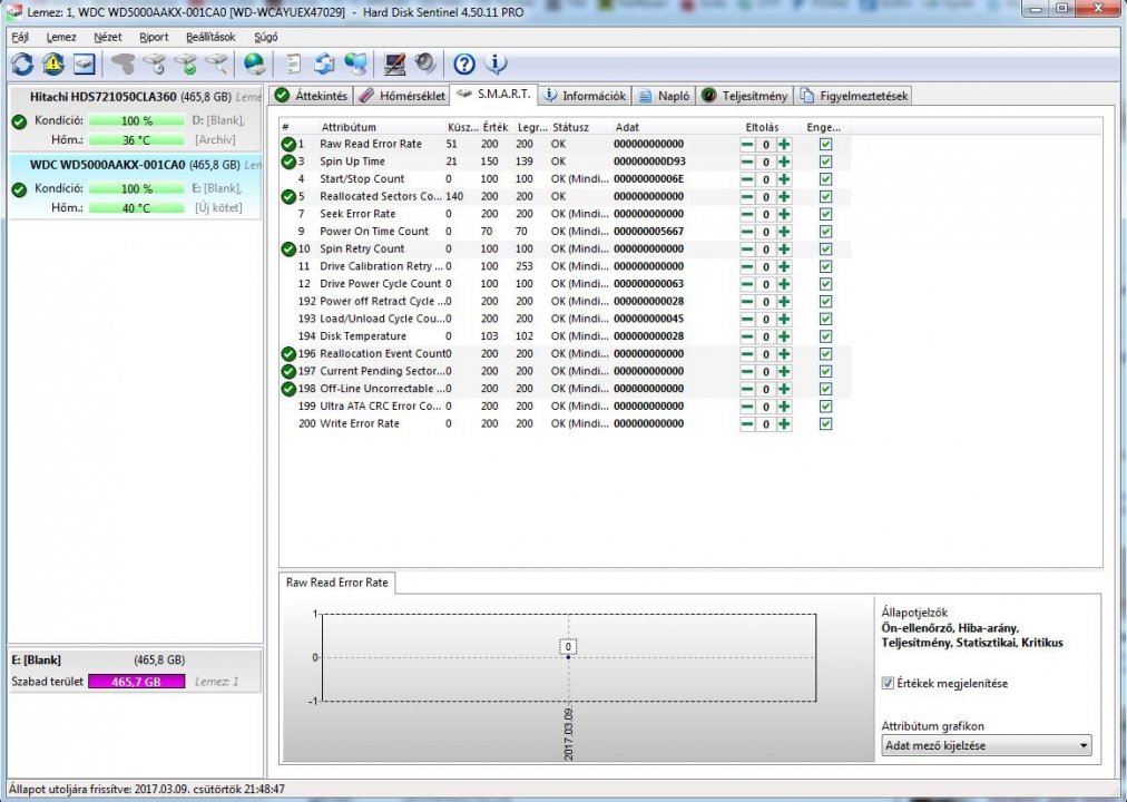 HDD Sentinel értékek a mellékelt fotókon.