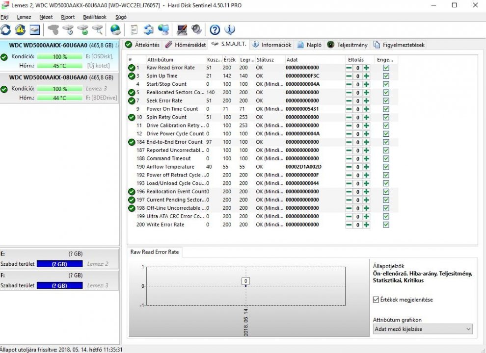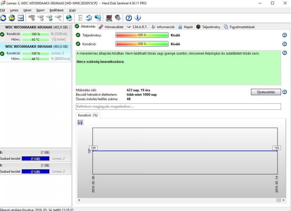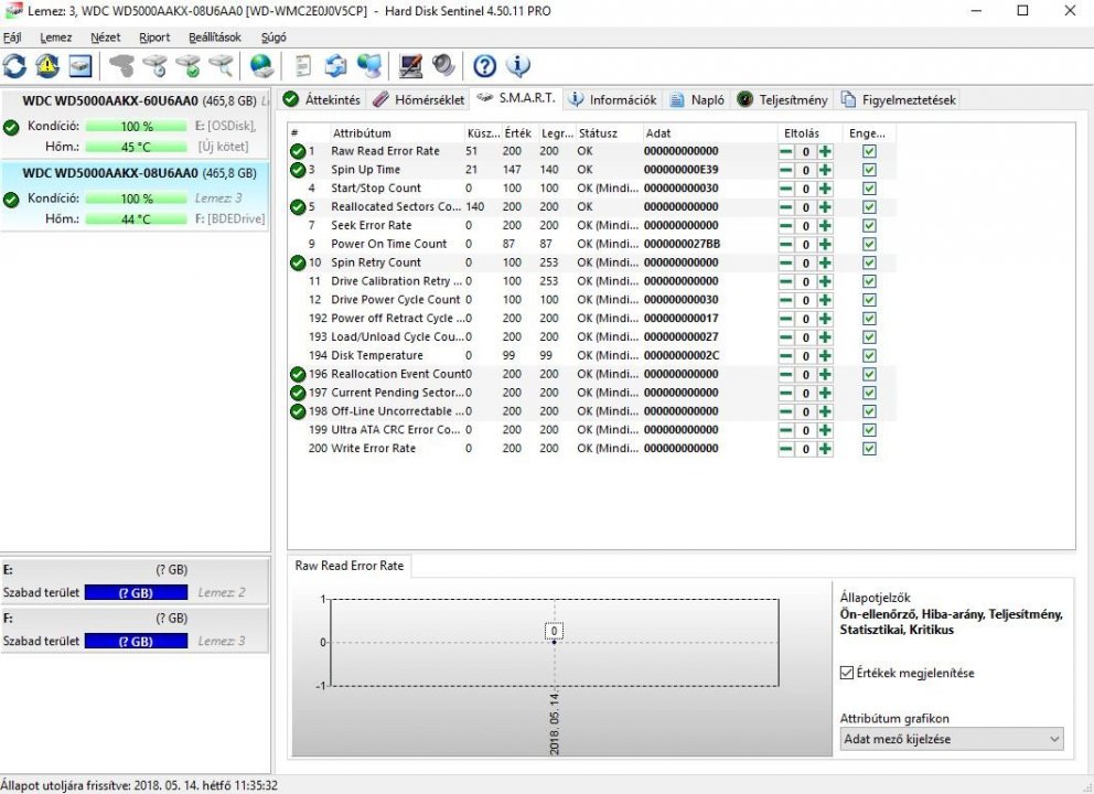 HD Sentinel értékek a mellékelt fotókon.