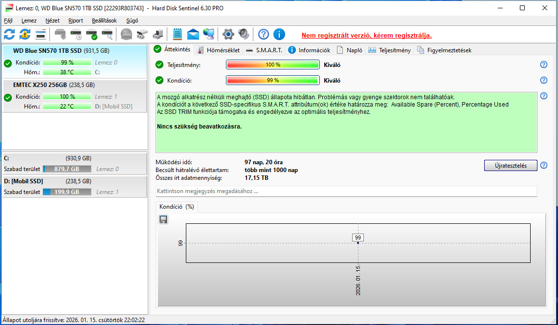 Eladó a fotón is látható 1TB SSD, állapota a képek között. 600 TBW elméleti élettartam.