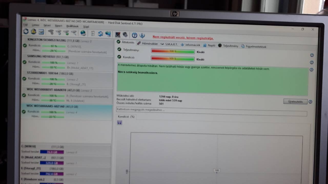 Eladó a képeken látható használt WD Caviar Blue 500 GB WD5000AAKS 100/100-as