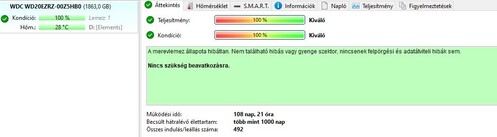 WDC WD20EZRZ (WD Blue sorozat) - 100/100; 109 nap, ~500indítás