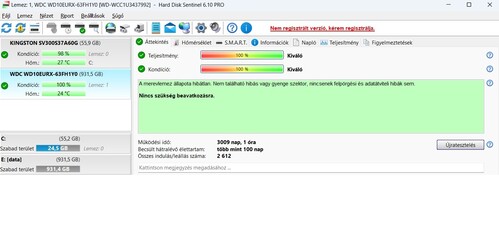 Eladó a képeken látható WD Green 1TB ( WD10EURX ) 100/100 HDD