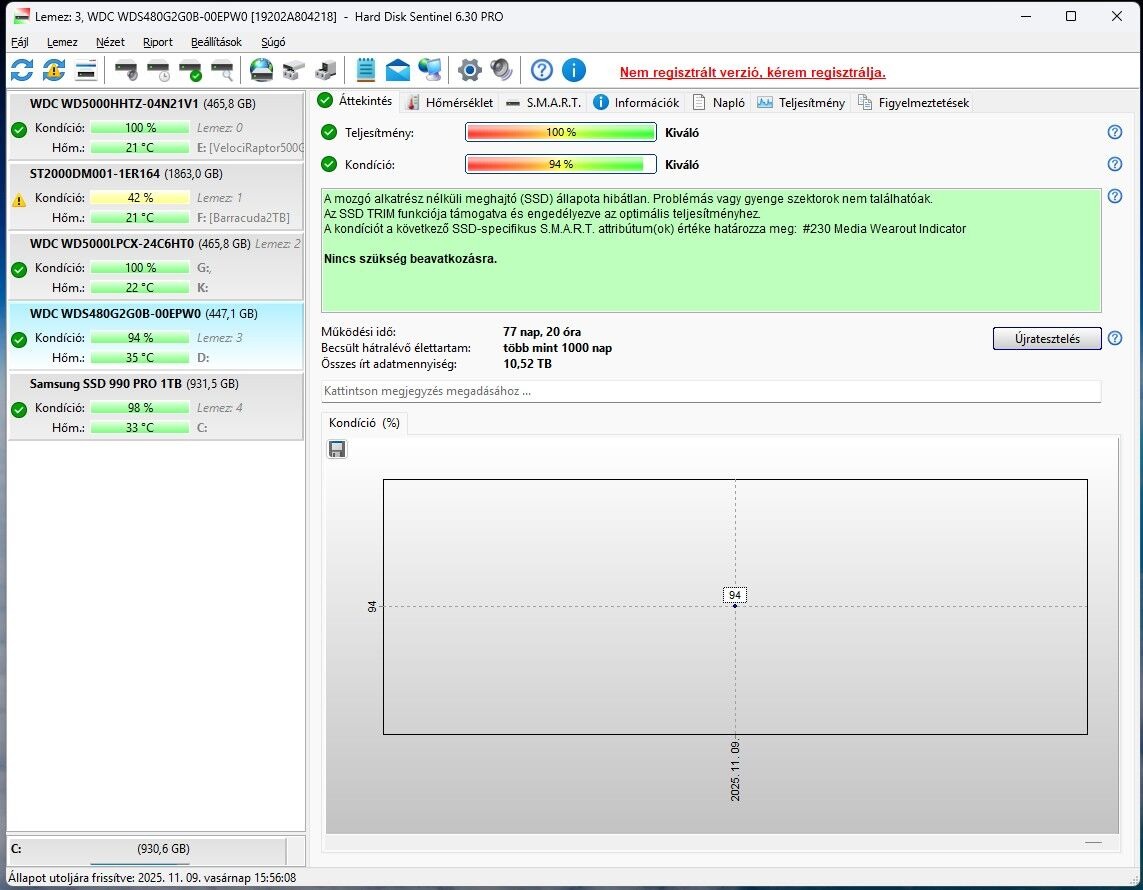 Win 10 futott rajta, másodlagos gépben volt, csak esténként ment.