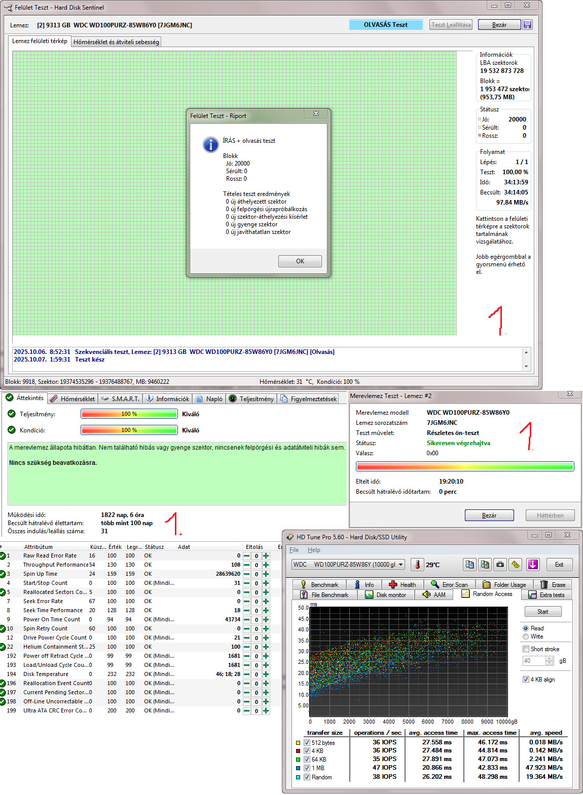 1. WDC WD100PURZ-85W86Y0 10TB 7200RPM CMR 100/100 - 1822nap 6óra 31indulás - 45k2. WDC WD100PURZ-85W86Y0 10TB 7200RPM CMR 100/100 - 1915nap 9óra 28indulás - 45k3. WDC WD100PURZ-85W86Y0 10TB 7200RPM CMR 100/100 - 1945nap 6óra 28indulás - 45k