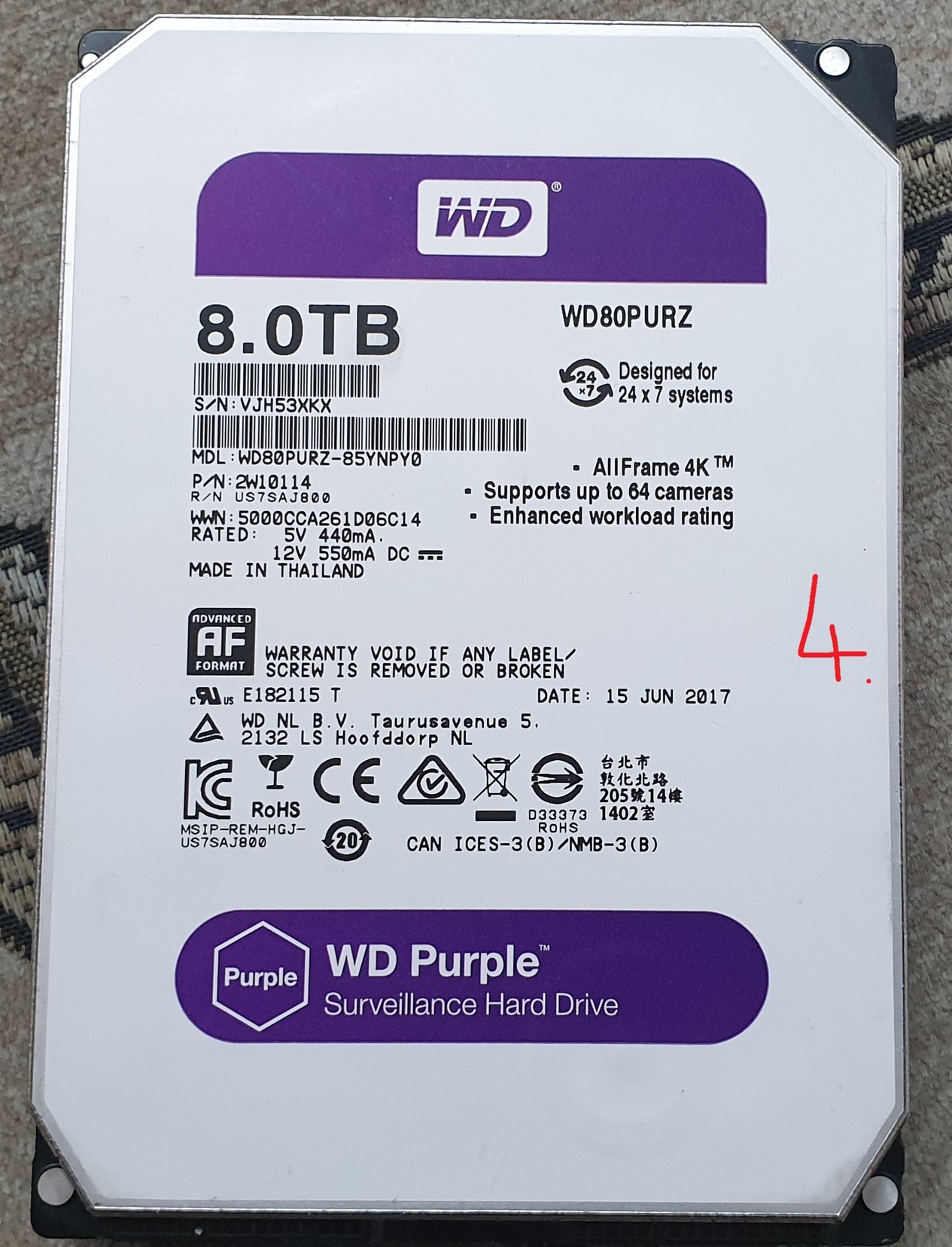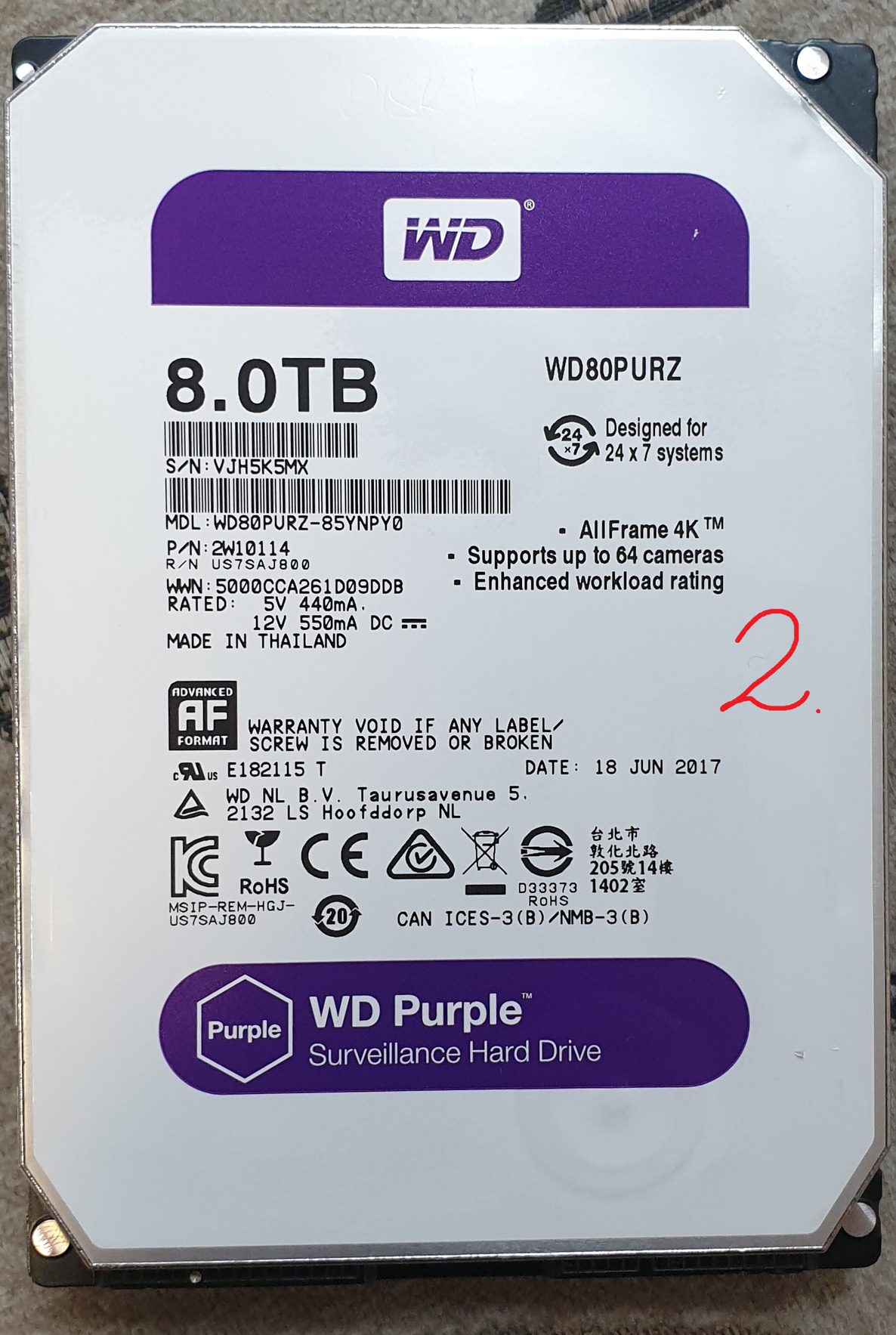 WD PURPLE 8TB 100/100