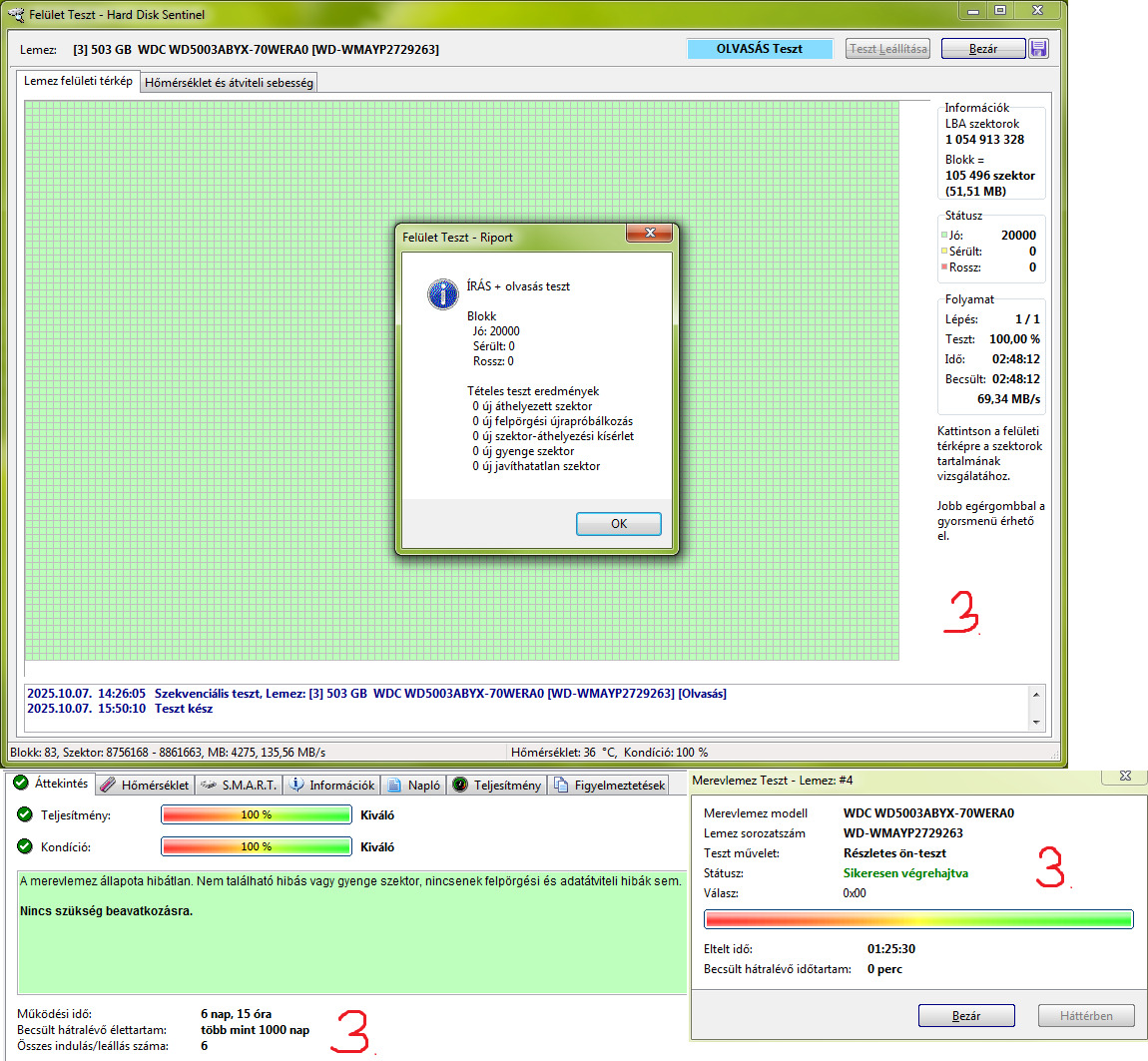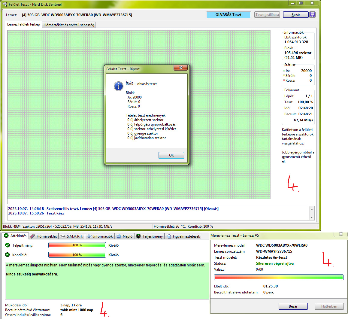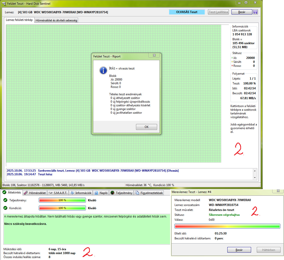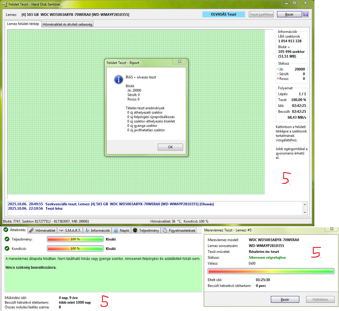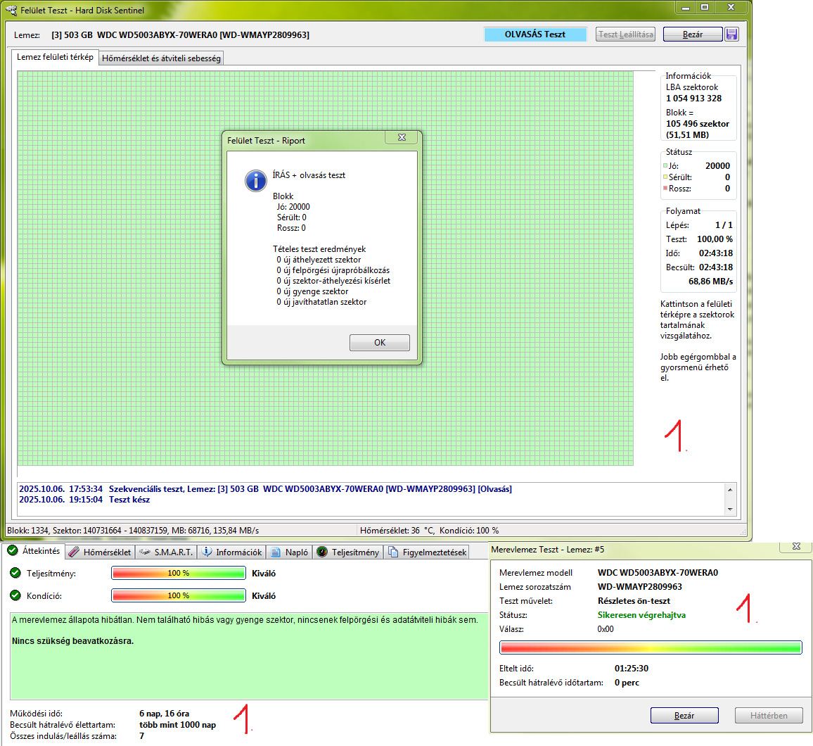 Teljes írás-olvasás felületteszt és Részletes önteszt lefutott.