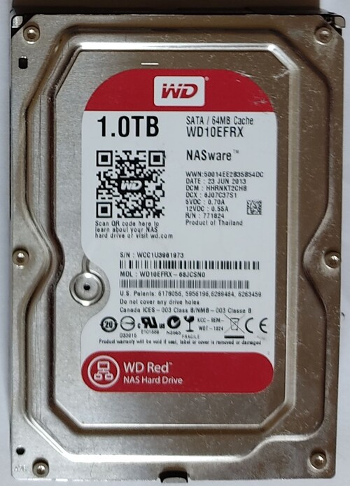 WD Red 1TB 64MB cache HDD, 100/100, 1db