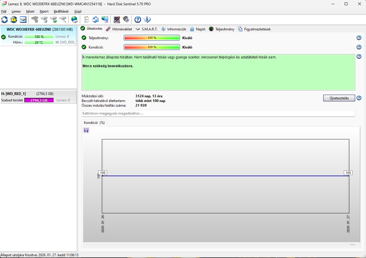 Eladó 3 TB-os WD RED NasWare HDD ( WD30EFRX) 100/100-as állapotban. Sentinel mellékelve.