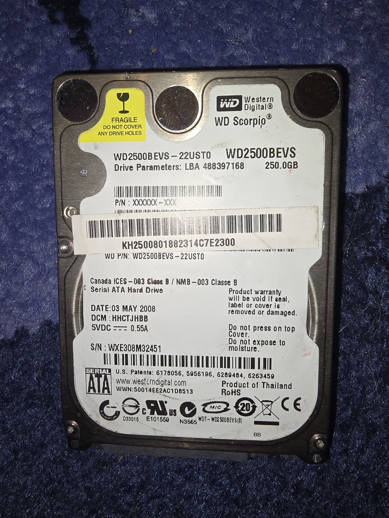 WD Scorpio 250 GB 2,5 HDD 100/100