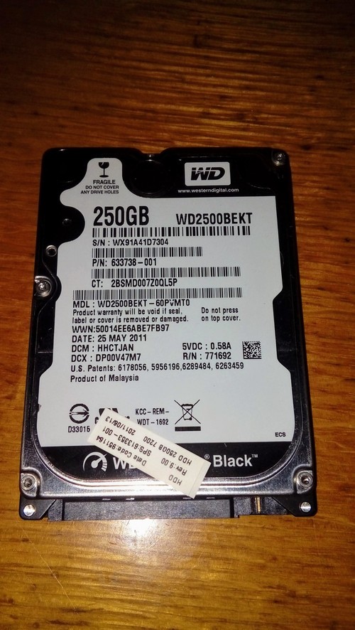 ELADÓ Western Digital Scorpio 250GB 16MB 7200rpm SATA WD2500BEKT laptop HDD, kitűnő állapotban.