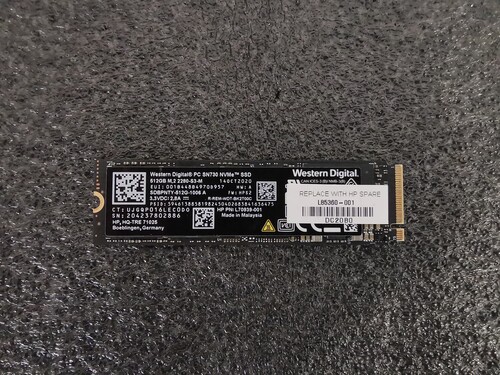 HP kliens PC-ből nagyobbra cserélés miatt kivett gyári új SSD. A formatálás és a Sentinel kép idejére lett csak beüzemelve, ezzel együtt 1 óra üzemidőt mért rajta.