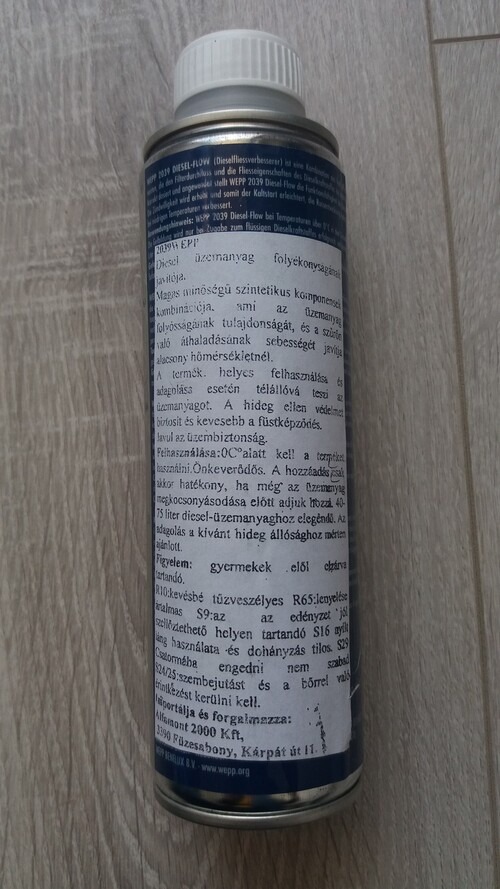 Eladó Wepp 2039 diesel flow dermedésgátló. Diesel üzemanyag folyékonyságának javítója. Bontatlan, de nem tudom mikori, nem találtam rajta dátumot. Kecskeméten átvehető vagy előreutalás után küldöm.
