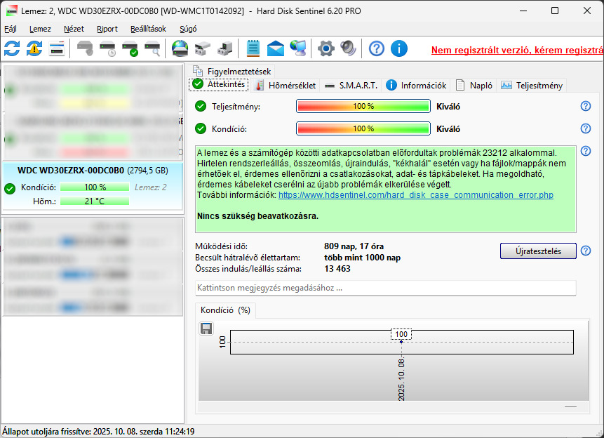 WMC1T0142092 810 nap - rossz SATA kábellel ment egy ideig, ez látszik a SMART adatok között