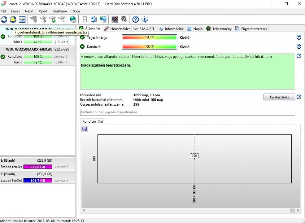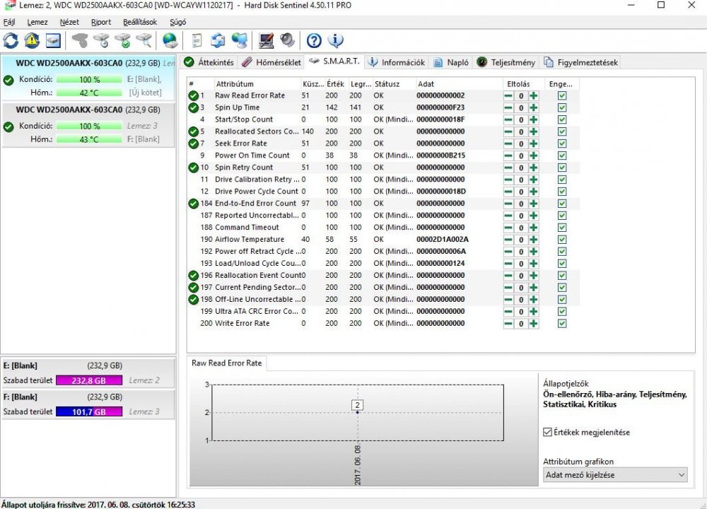 HDD Sentinel értékek a mellékelt fotókon.