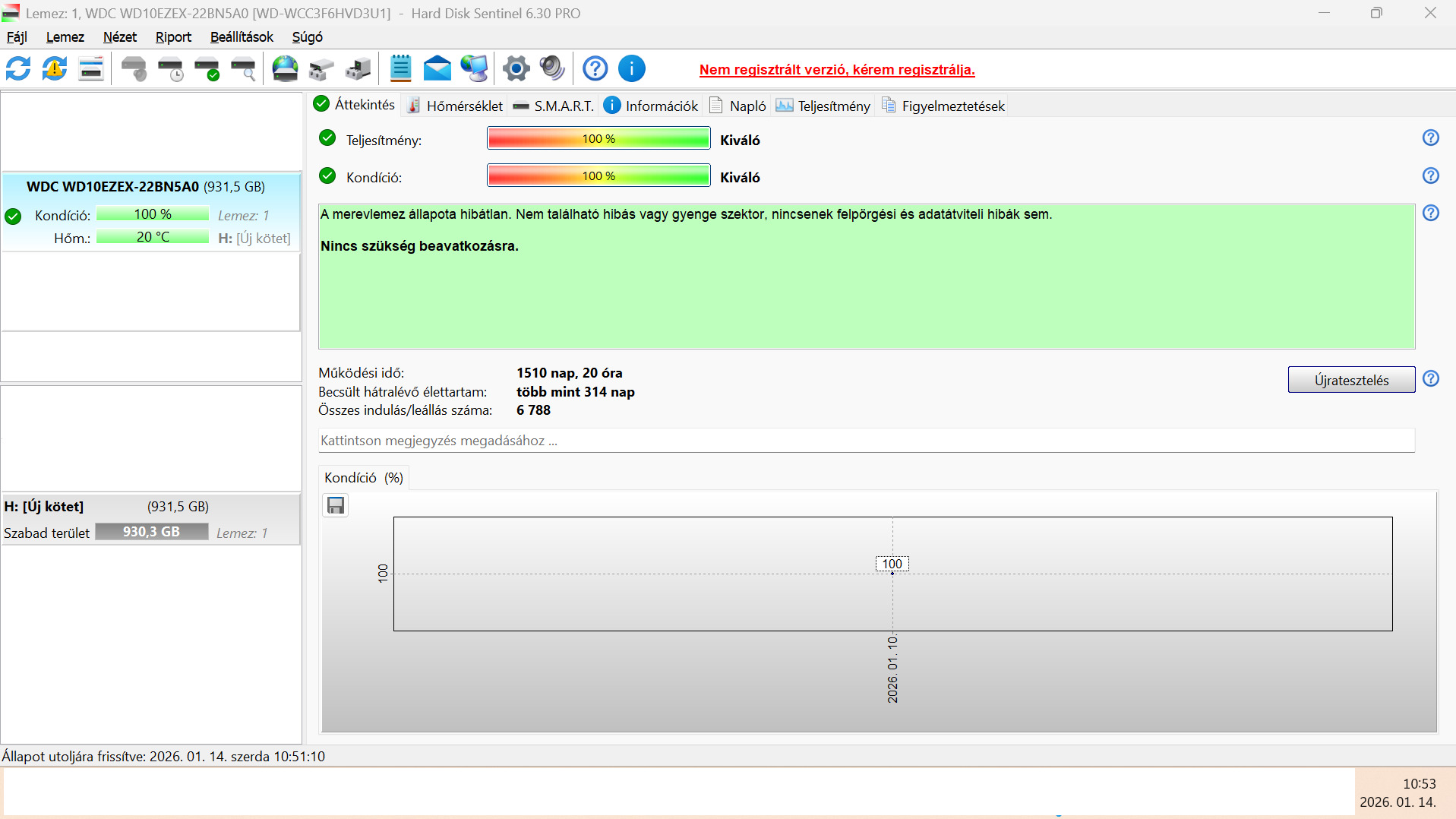 Eladó a képeken látható állapotban lévő WD10EZEX- 2BN5A0 típusú merevlemez. HD Sentinel képet csatoltam.