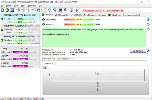 - HDSentinel alapján 100%/100%-os állapot