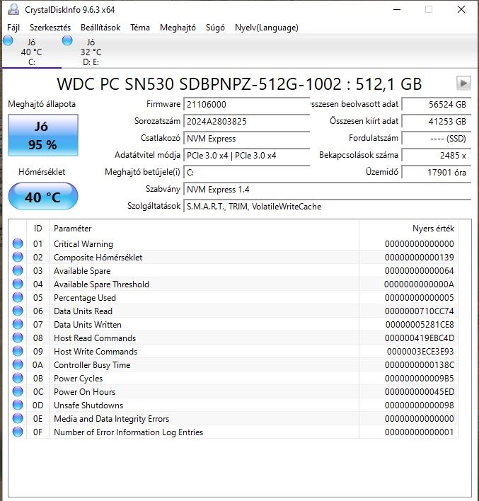 WesternDigital pc SN530 NVMe SSD.