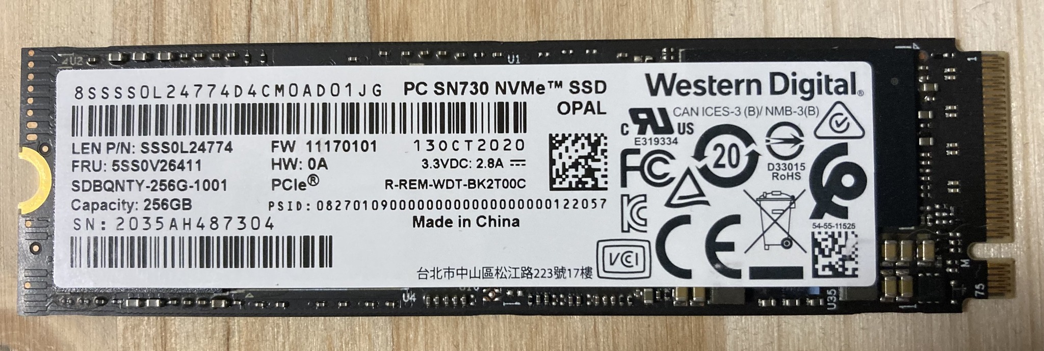 Jegelve – Western Digital SN730 256GB