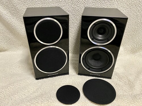 A hangszórókat takaró szövetek hibátlanok, a fa dobozok karcmentesek.