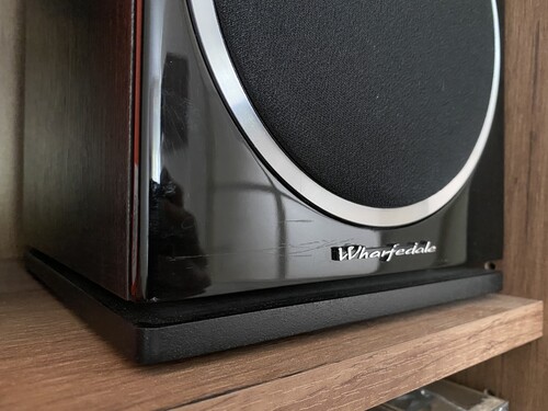 Apró, alig látható karcok találhatók az egyik hangfal elején. (3. kép)