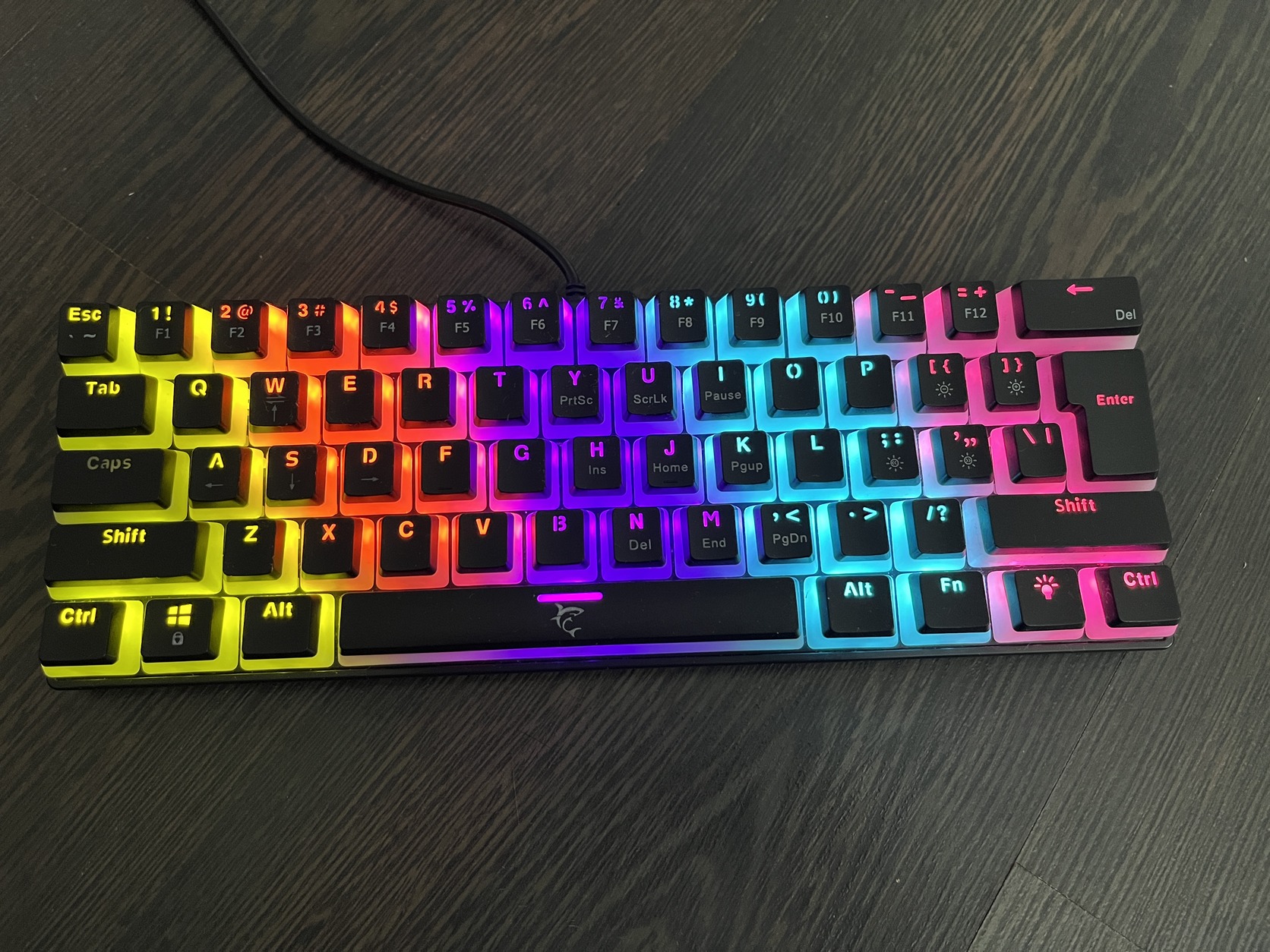 White Shark ASHIKO-B/BL, GK-2022B/BL-US fekete mechanikus, gamer billentyűzet angol kiosztással 61 gomb Outemu kék switchek. Rainbow háttérvilágítás.