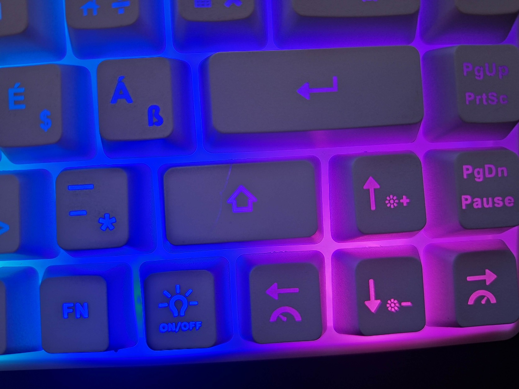 apró hiba , próbáltam fotózni a jobb shift billentyűn mintha megkarcolódott volna a festék vagy megrepedt . szabad szemmel alig észrevehető ( persze ha nem 10 centiről nézzük) működésében semmilyen módon nem befolyásolja .