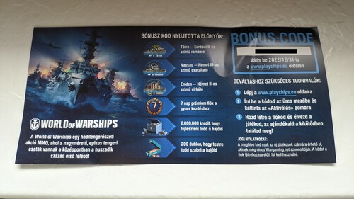 Eladó a képeken látható 9.100Ft értékű World Of Warships ajándékkártya töredék áron. Csak új előfizetőknek!