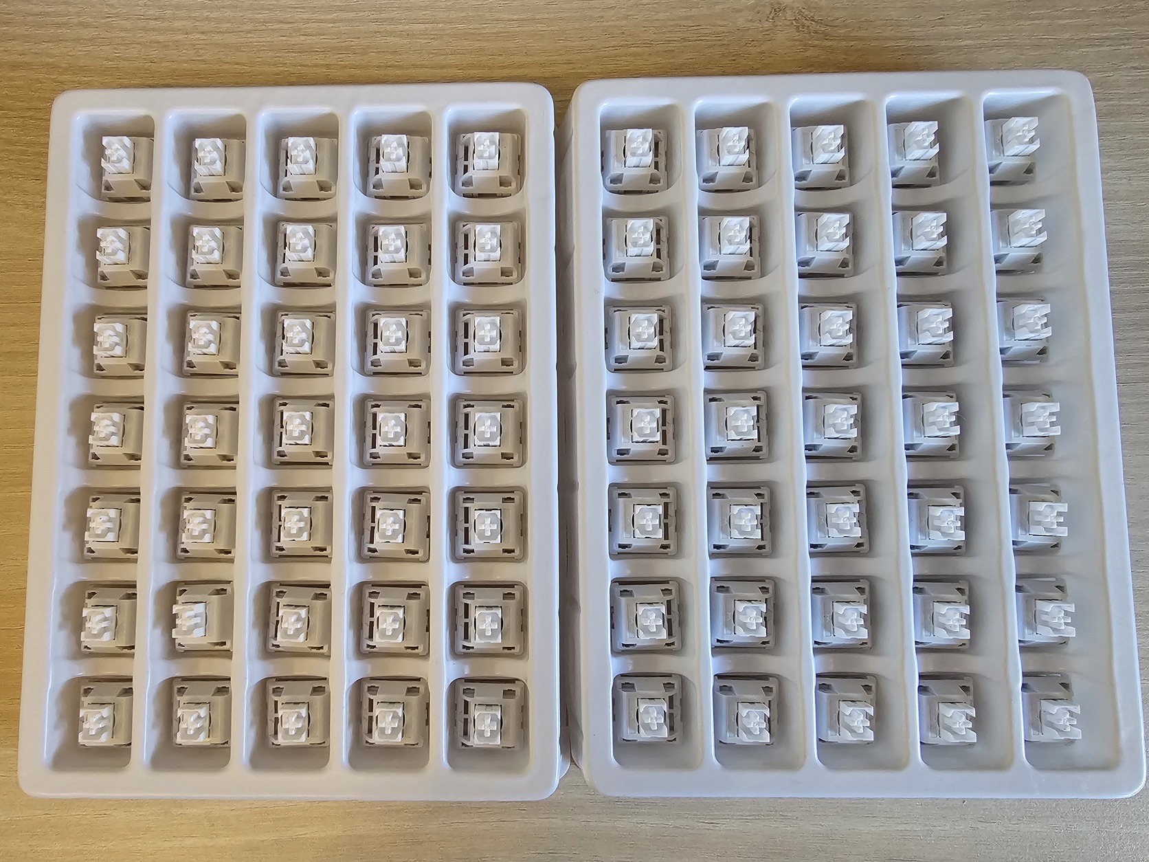 A Q8 Gateron foglalataival picit szorult némelyik, berakáskor 2 kapcsoló szára meggyűrődött. Műkődőképesek és azokat is odaadom a csomaggal, viszont így az eredeti 70-ből csak 68 kapcsoló tökéletes állapotú.