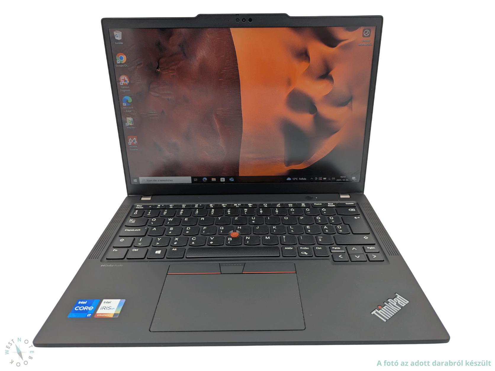 A Lenovo Thinkpad X13 Gen4 egy felső kategóriás, fémházas üzleti ultrabook. Nagyon vékony és könnyű (1.12 kg), mégis masszív, katonai szabványoknak megfelelően tesztelt, high-tech magnéziumötvözetből készült strapabíró gépháza van. Nagyon erős, 13. generációs és 12 v.magos i7-1355U processzorának, az integrált kártyák mezőnyében rendkívül erősnek számító Intel Iris Xe G7 kártyájának és a 16GB memóriának köszönhetően a hardverigényes feladatokra is alkalmas. Full HD+ (1920x1200) IPS kijelzője 100% sRGB színlefedettséggel és 300nit fényerővel rendelkezik. Nagyon gyors 512GB-os NVMe SSD (PCIe 4.0) van a gépben, amely által a rendszer és a programok pillanatok alatt betöltenek. Bekapcsológombba integrált ujjlenyomat-olvasóval és IR kamerával is rendelkezik.