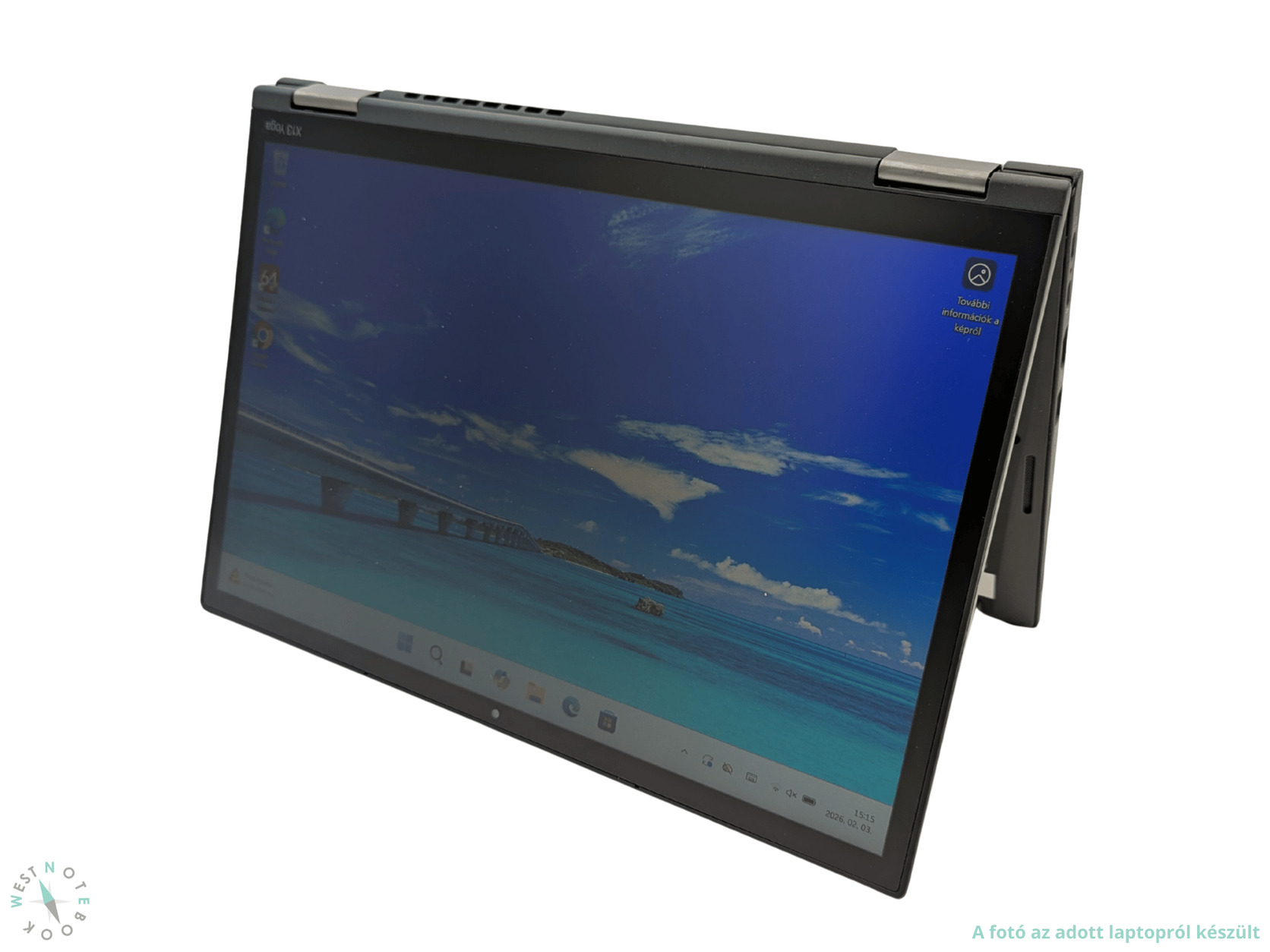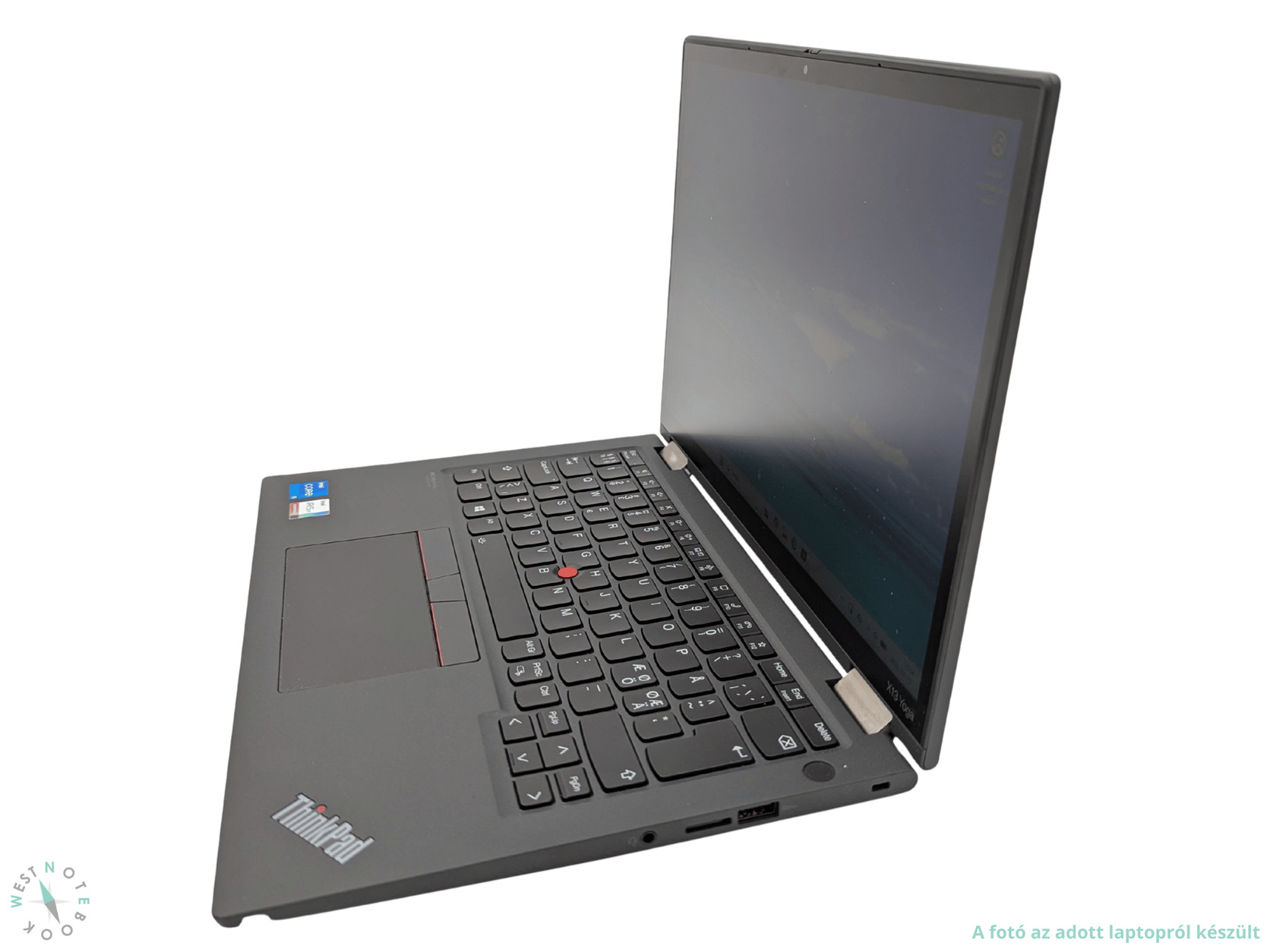 A Lenovo Thinkpad X13 Yoga Gen2 egy felső kategóriás, fémházas, 2 az 1-ben üzleti ultrabook. Az erős, 11. generációs és 4 magos – 8 szálon futtató i5-1135G7 CPU-nak, az integrált kártyák között nagyon erősnek számító Intel Iris Xe G7-nek és a 16GB memóriának köszönhetően a hardverigényes feladatokra is alkalmas. Full HD+ (1920x1200) IPS érintőkijelzőjét kiemelkedően magas kontrasztarány, színhűség, betekintési szög és színlefedettség jellemzi. 100% sRGB színlefedettséggel és 300nit fényerővel rendelkező LCD. A kijelző ráadásul teljesen kihajtható, így a laptop akár tabletként is használható. Gyors 256GB-os NVMe SSD van a gépben, így a rendszer és a programok villámgyorsan betöltenek. Bekapcsológombba integrált ujjlenyomat-olvasóval és Windows Hello arcfelismerős bejelentkezést támogató IR kamerával is rendelkezik. A laptophoz aktív toll is tartozik.