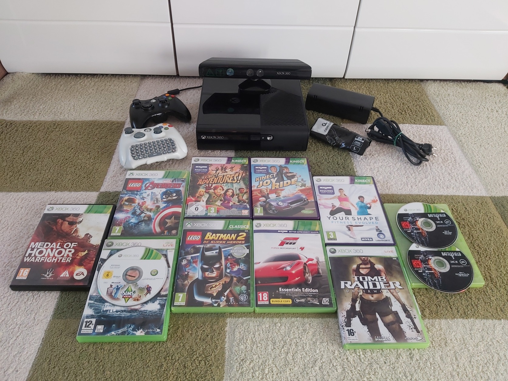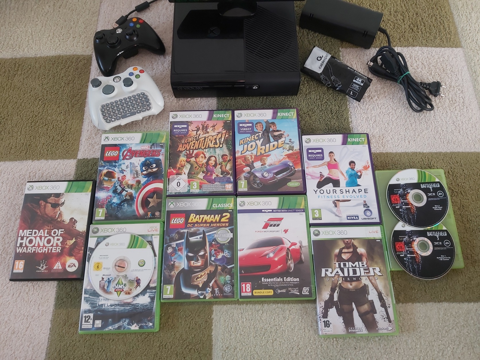 Eladó a képeken látható, megkímélt állapotú Xbox 360 E Slim 500GB játékkonzol, 2db eredeti vezetéknélküli kontrollerrel, kinect szenzorral, 10db játéklemezzel és tartozékaival együtt.