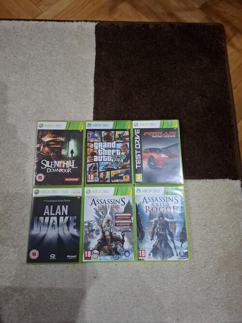 Xbox 360 konzol, tápkábel, 1 kontroller - aksi nélkül, füles voice chat-hez, HDMI nélkül 17 játék: Alan Wake Alan Wake's American Nightmare Amy Assassin's Creed 2 Assassin's Creed Brotherhood Assassin's Creed 3 Assassin's Creed Rogue Assassin's Creed 4 Deadlight GTA 5 Hitman Absolution I am alive Silent Hill Downpour Test Drive Ferrari Racing Legends The Walking Dead Season 1 The Walking Dead Season 2 The Wolf Among Us