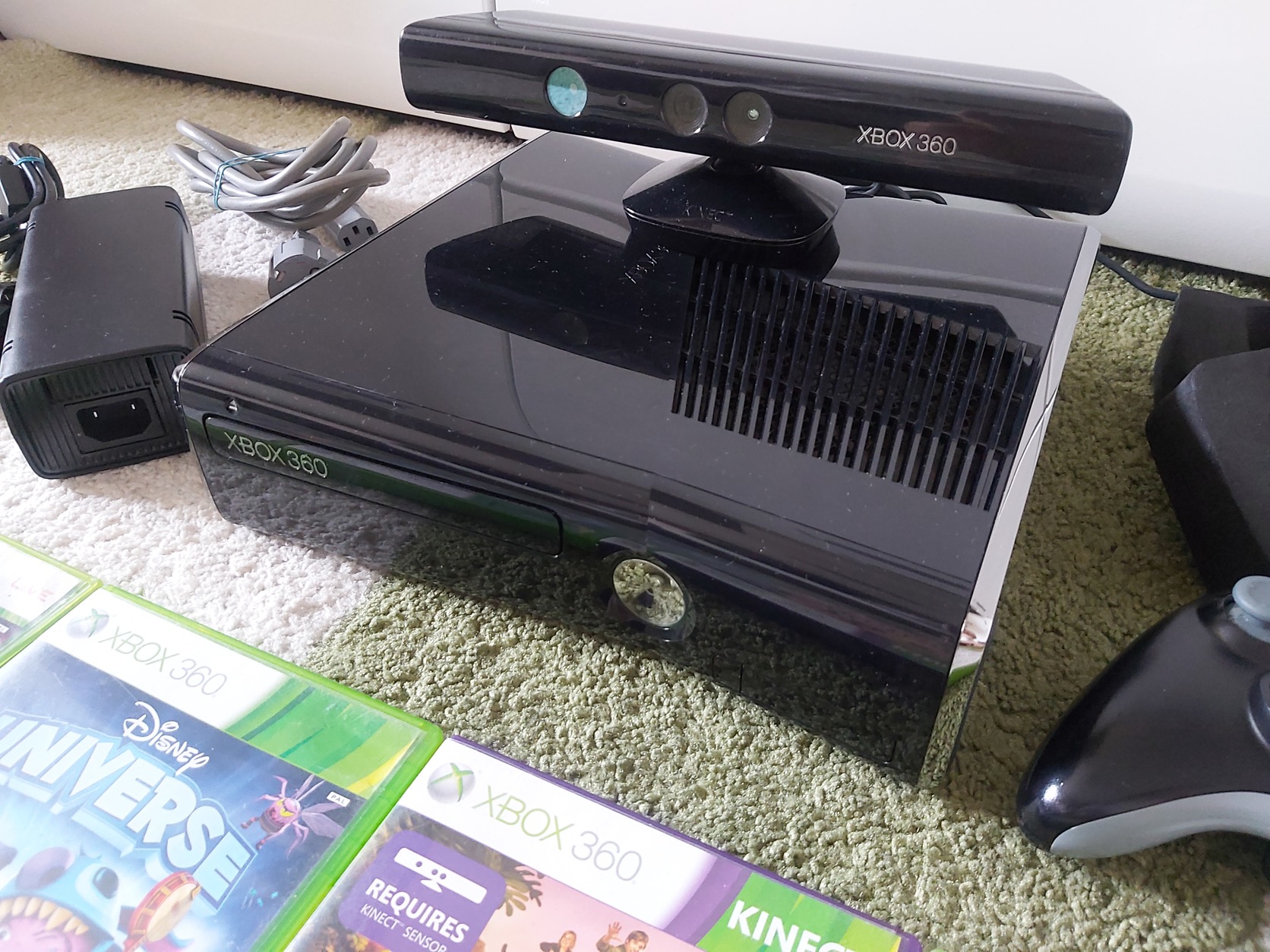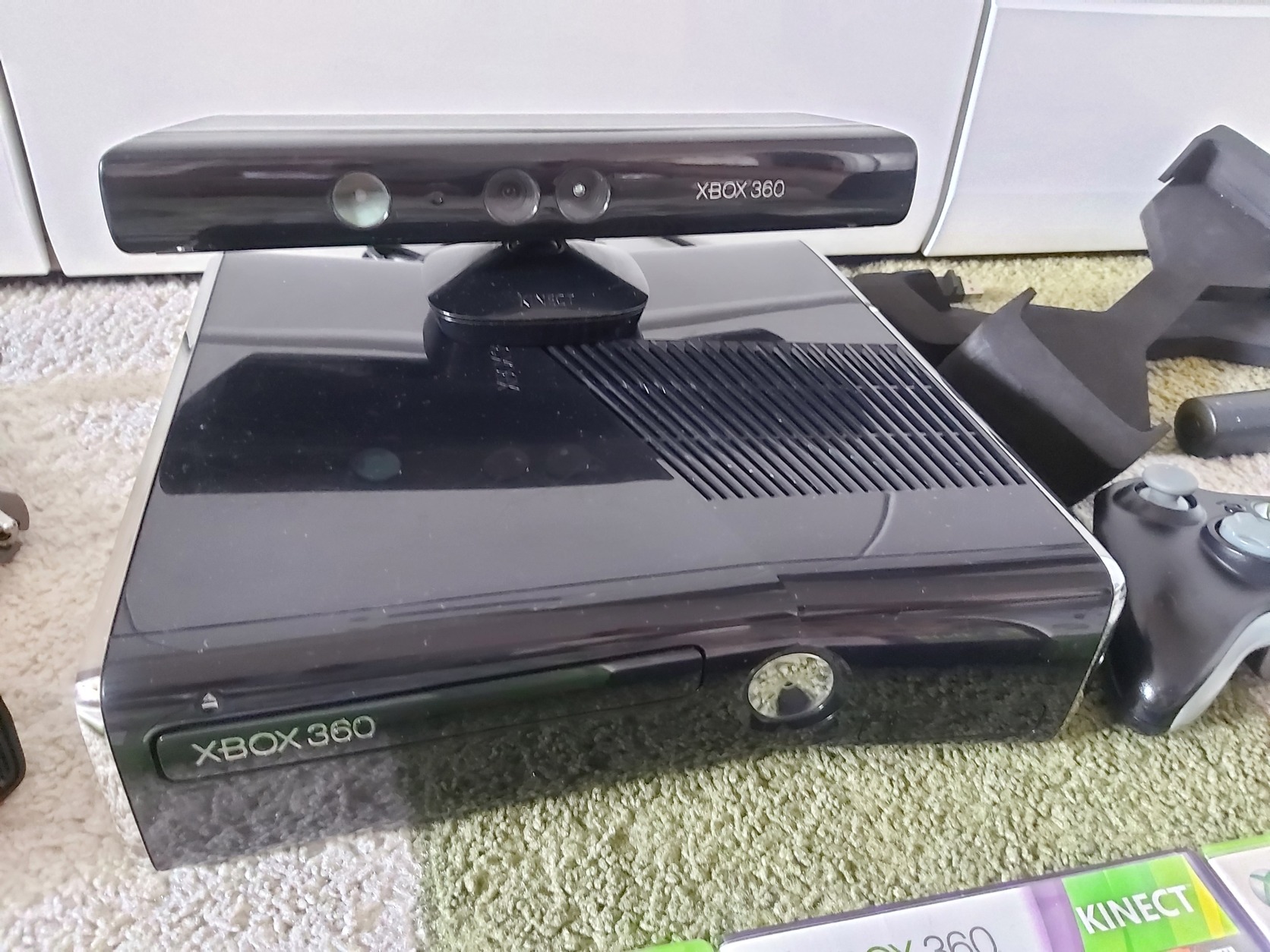 Eladó a képeken látható használt (a fényes felületen hajszálkarcok találhatóak), de megkímélt állapotú Xbox 360 Slim 250GB játékkonzol, 2db eredeti vezetéknélküli kontrollerrel, kinect szenzorral, mikrofonnal, játékokkal és tartozékaival.