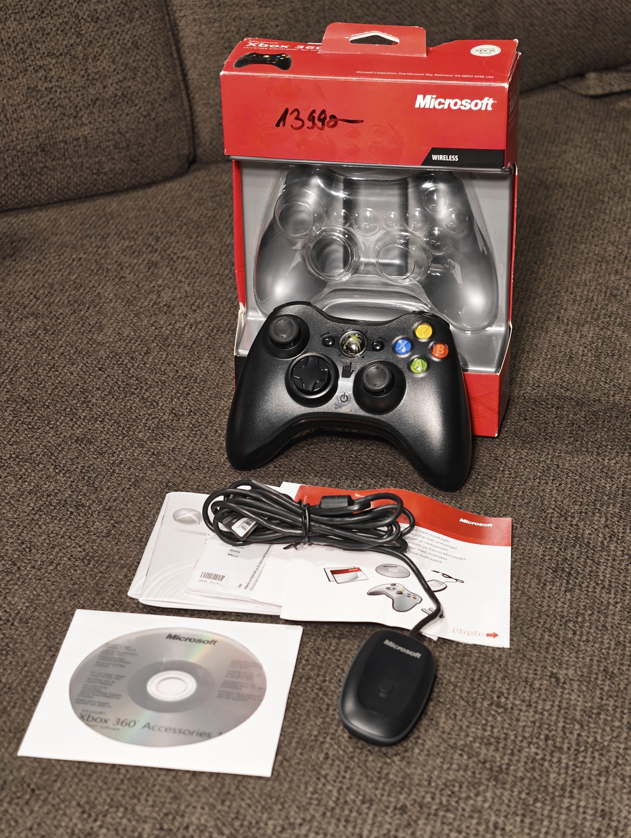 1 db gyári vezeték nélküli kontroller saját dobozában, papírjaival, telepítő lemezzel és gyári PC-s vevőegységgel.