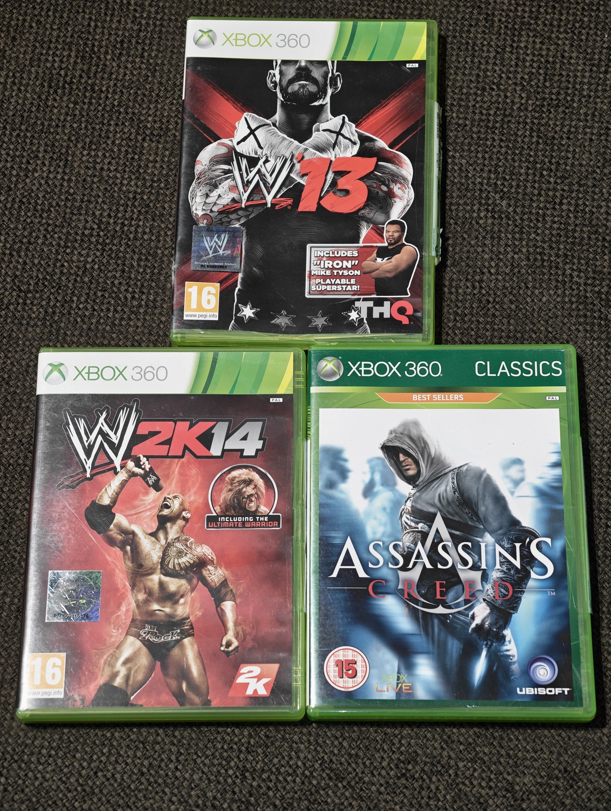 Ajándék játékok: Assassin's Creed, WWE 2K14, WWE '13.