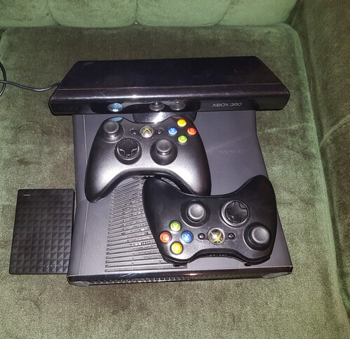 Xbox 360 Slim 250GB RGH + Kinect, 2 Controller, 1TB Külső HDD
