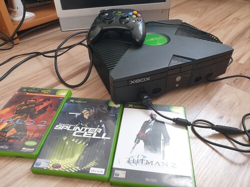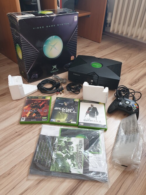 Xbox Classic kontrollerrel és játékokkal
