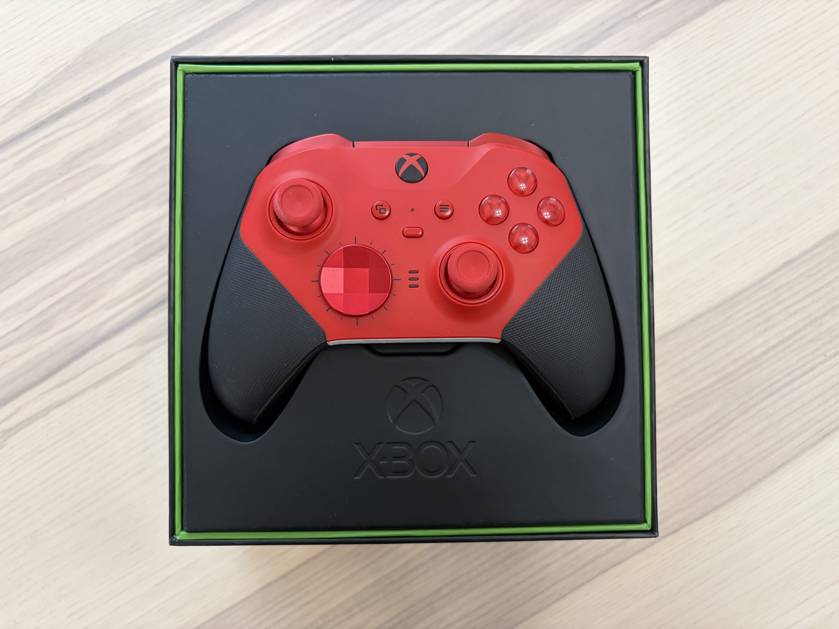 Alig használt, jó állapotú, piros színű Xbox Elite Wireless Controller Series 2 - Core kontroller. Xbox-al és PC-vel is kiválóan működik.