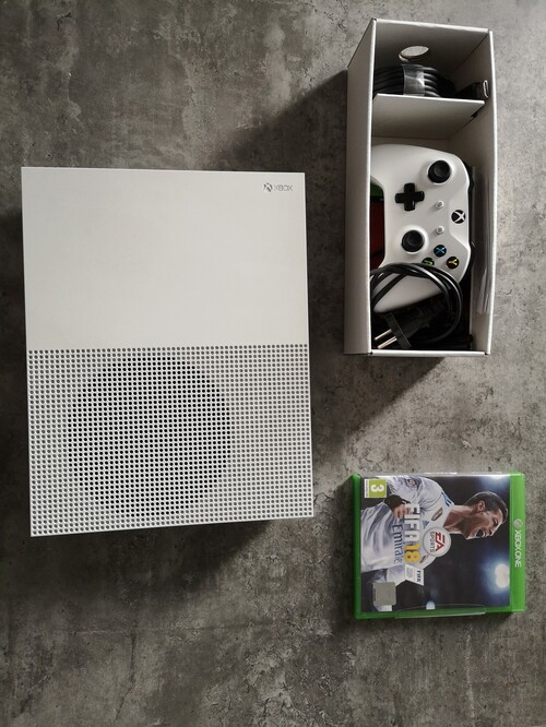 Xbox One S 1TB, 1 kontroller, doboz, gyönyörű állapotban, + FIFA 18 + 2 játék