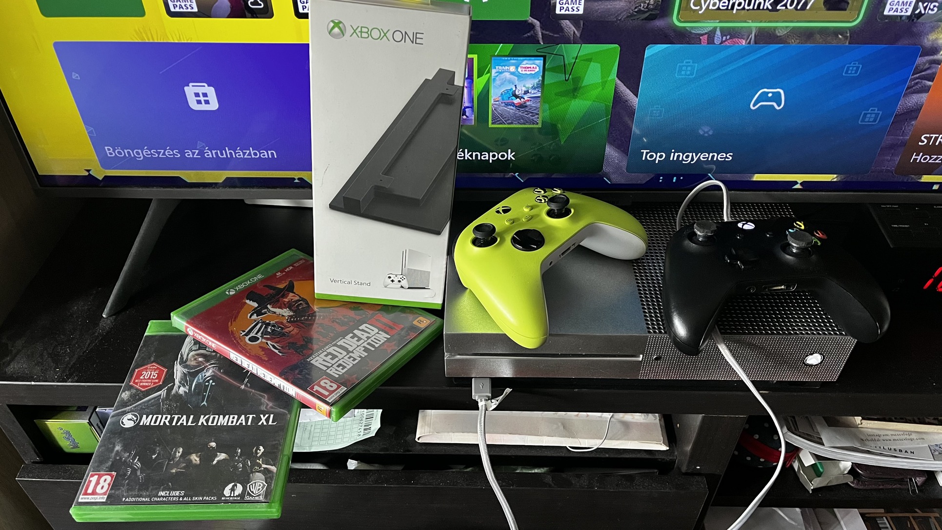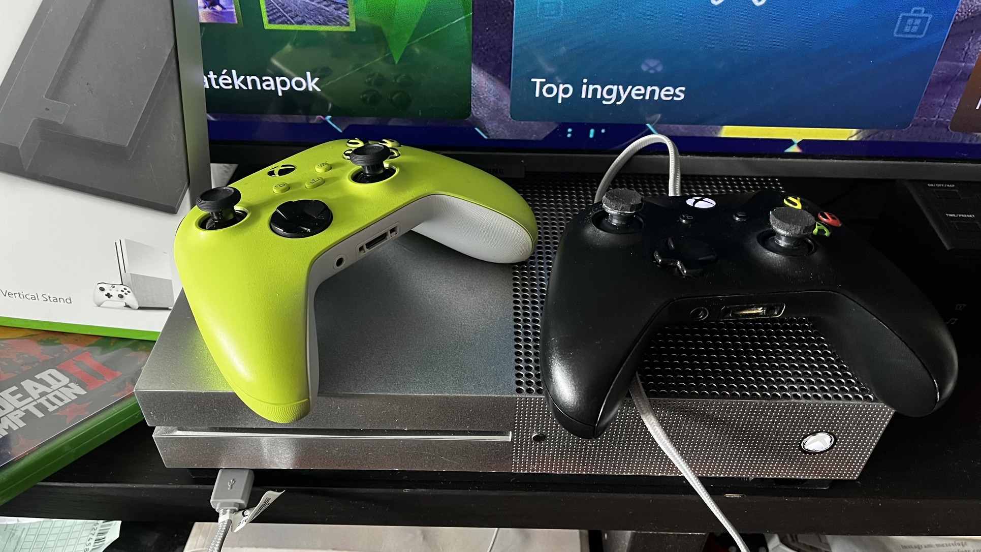 Adok hozzá egy Series S Electric Volt kontrollert és egy normál fekete kontrollert! Mind a kettő hibátlan , nem driftel , nem ragad. Frissen takarítva mindegyik. Adok még egy gyári Xbox Vertical Stand tartót . Valamint 2 lemezes játékot Mortal Kombat XL és Red Dead Redemption 2 !
