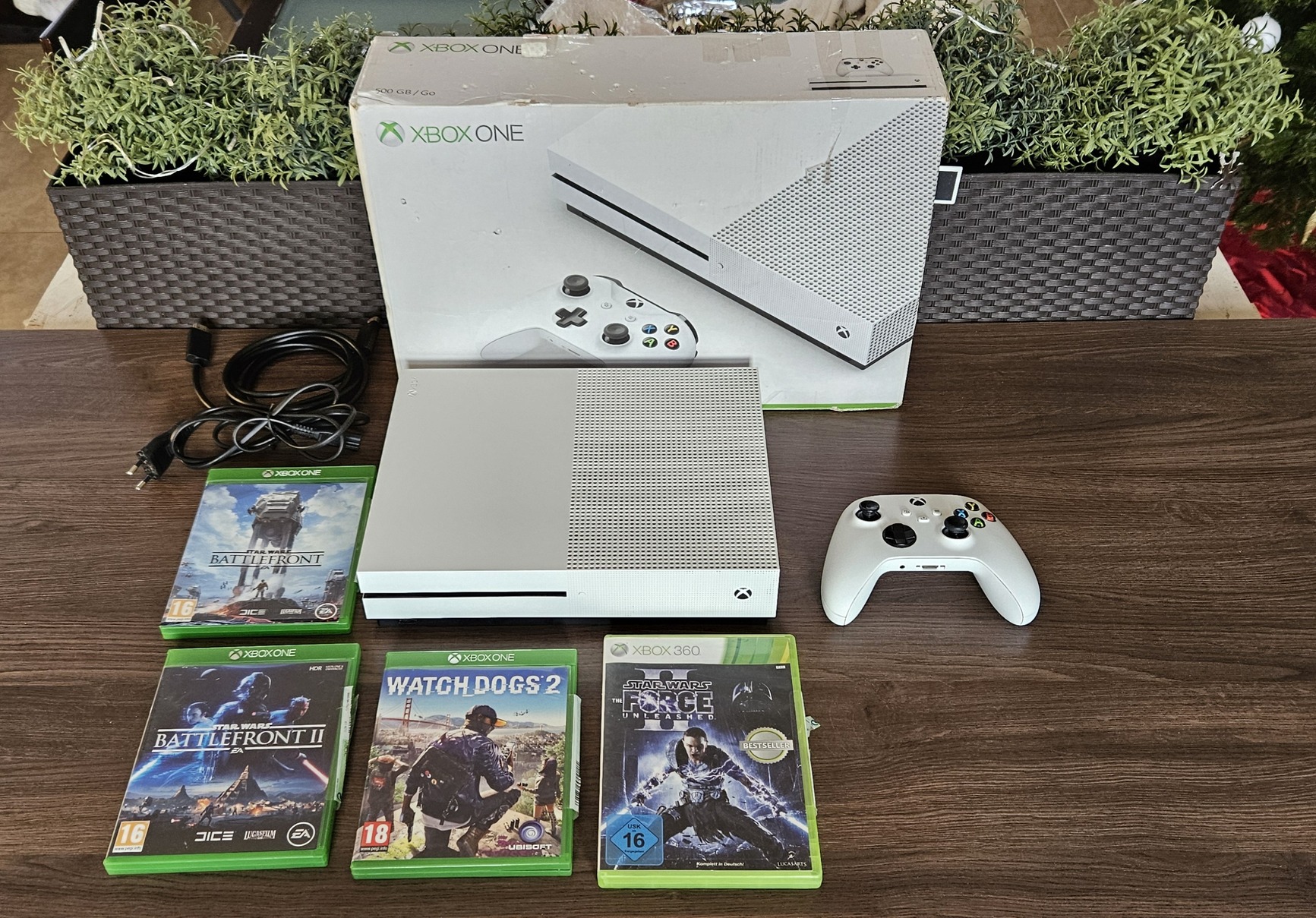 Xbox One S 500GB lemezes konzol 1 db kontrollerrel eredeti dobozában + 4db játékkal eladó