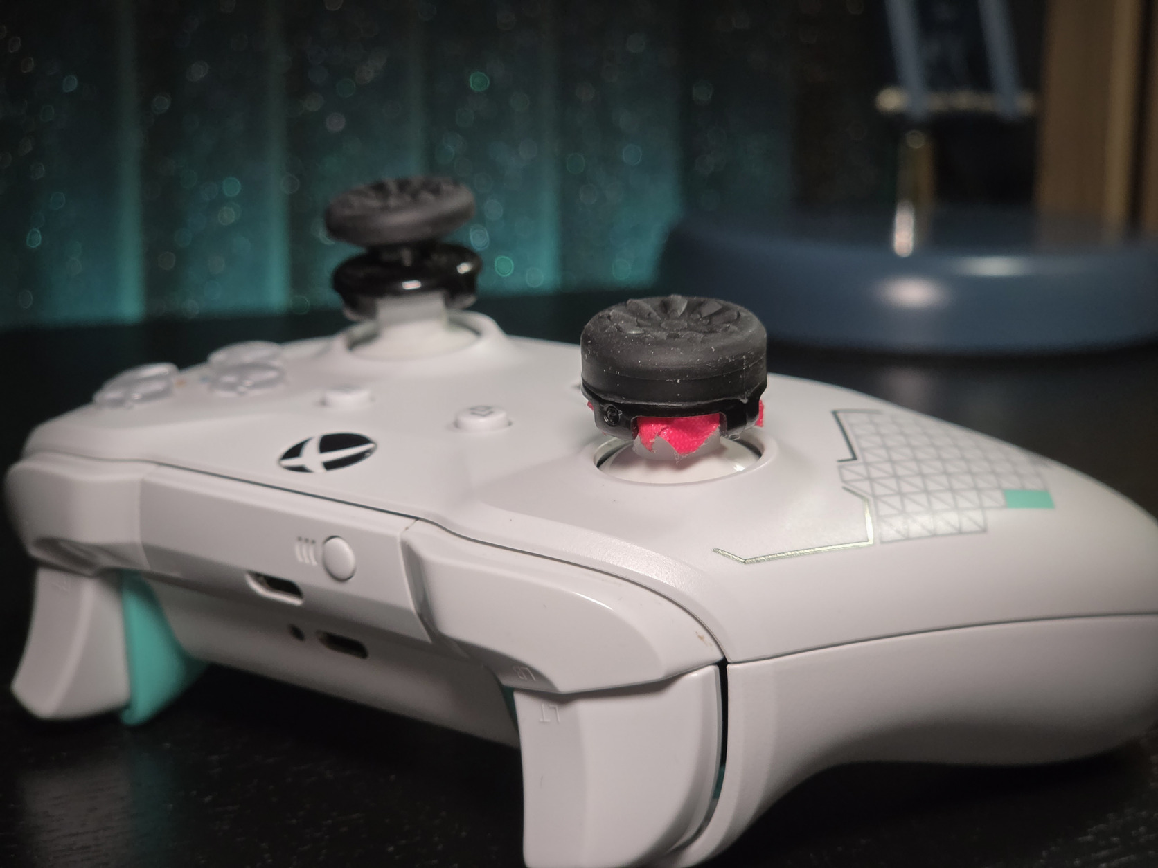 A thumbstickek gumija lekopott, ezért egy plusz extender került rá.