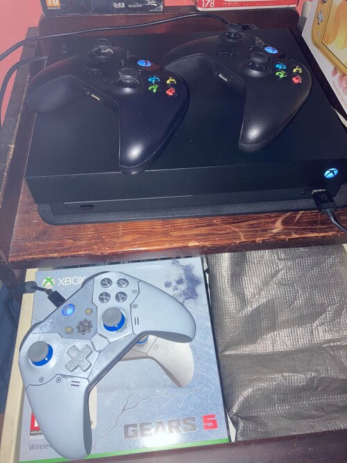Eladó egy használt jó állapotú Xbox One X játékkonzol dobozában, 3 kontrollerrel(a Gears 5-ös 2021.09.11.-éig garis).