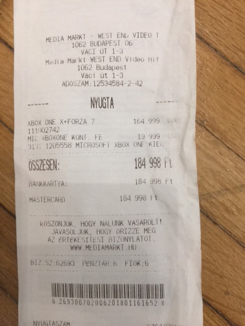 Az számlán látható az eredeti vételi ár. A konzol kb 4x lett használva, még garanciális.